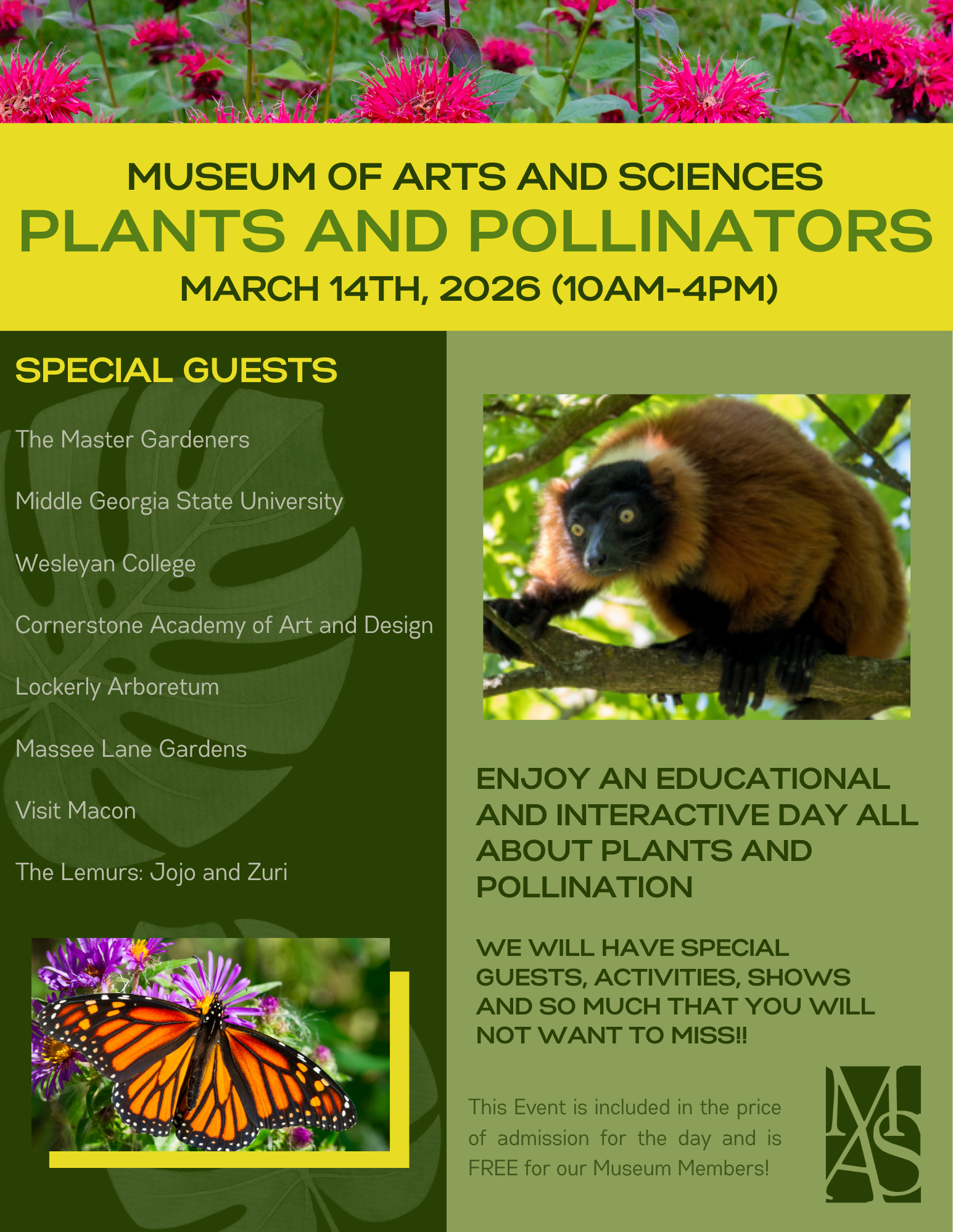 Enjoy an educational and interactive day all about plants and pollination, with special guests, activities, shows and SO much that you will NOT want to miss!!