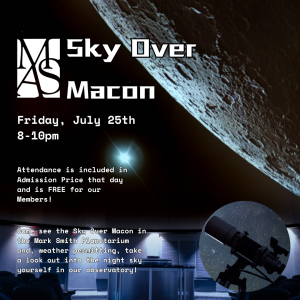Get Ready for Sky Over Macon! We will be having a Planetarium Show and, weather permitting, the Observatory will be open so you can see the stars and planets for yourself!!