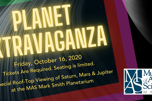 Join the Museum of Arts and Sciences for a special planetarium show and telescope event to celebrate the appearance of the three most exciting planets in the sky: Mars, Saturn, […]