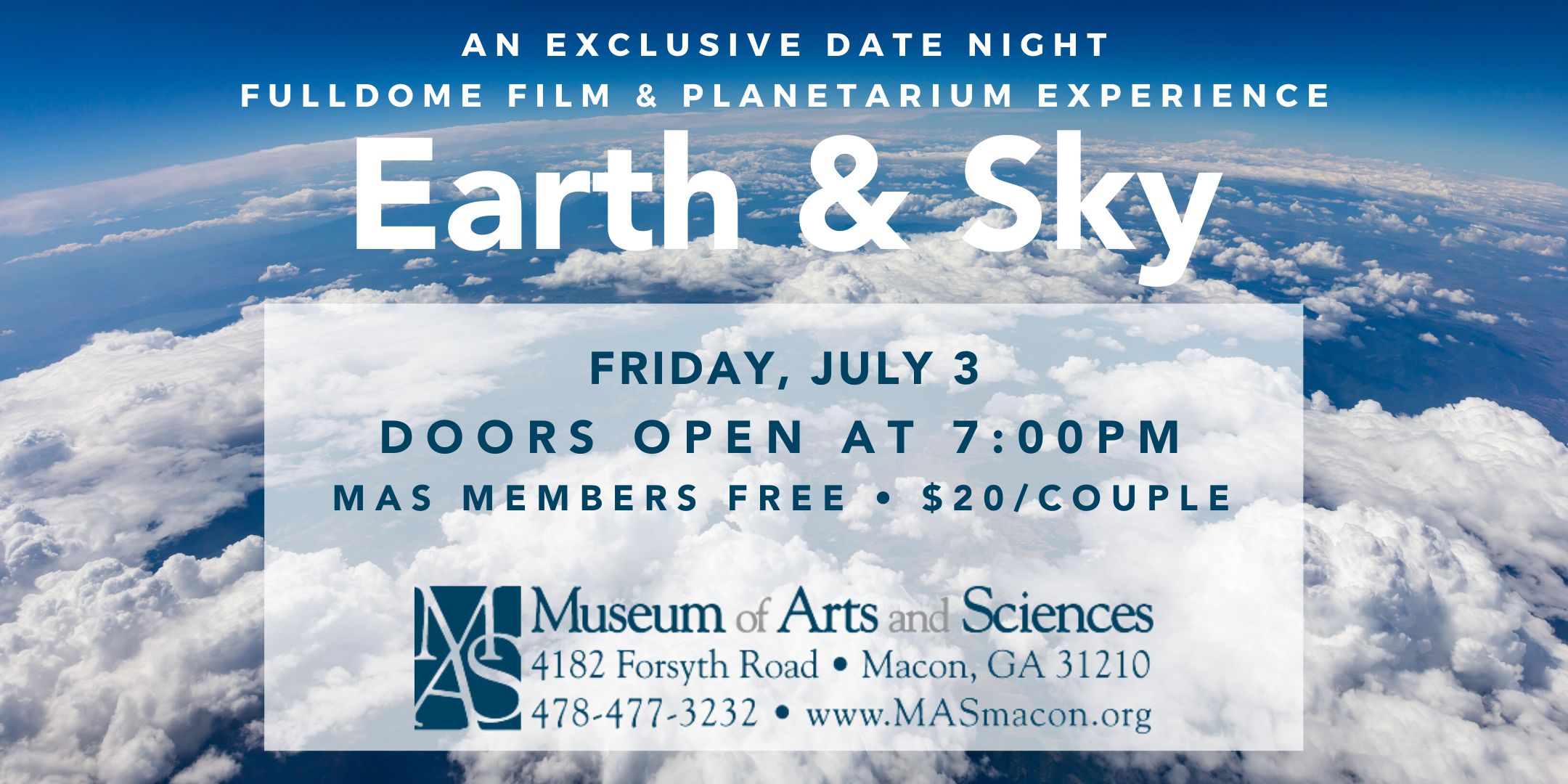 Join us for a unique date-night experience at the Museum of Arts and Sciences. The evening includes a live curated planetarium show and 3 Fulldome films. The evening will be offered to only 12 couples to ensure social distancing. Seating will be reserved for each couple. Masks are encouraged but not required.
